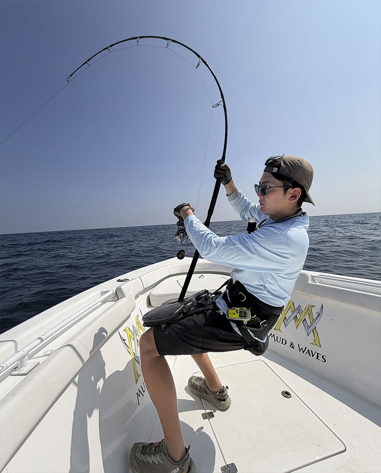 自分の釣りはオフショアキャスティングがほぼすべて。船に乗って沖に出て大きな魚を狙う釣りです。ターゲットは主にクロマグロ、キハダ、ヒラマサ、GT。近年は海外での釣りも多く、アジア、ヨーロッパ、アフリカ、中東と、世界中を飛び回る生活を続けています。なぜ世界中で釣りをするのかというと、“釣り”という釣り人共通の言語を介して、現地の人や釣り文化と交流するのが大好きだからです。海外から見ると日本の道具の性能の良さはものすごく評価されています。注目もされますし、日本の良い道具を広めたい思いもあります。また、海外には日本とは異なる理に適った釣法があって、ものすごく勉強になるんです。現地の釣りを学ぶことで自分の釣りの引き出しが増える体験はものすごく面白いですね。あとやっぱり一番は人との関わりです。世界の海で出会う人は皆釣り好きで、本当に釣りバカばっかりです(笑)。国境を越えて釣りに人生を懸けている人と出会える時間は最高です。