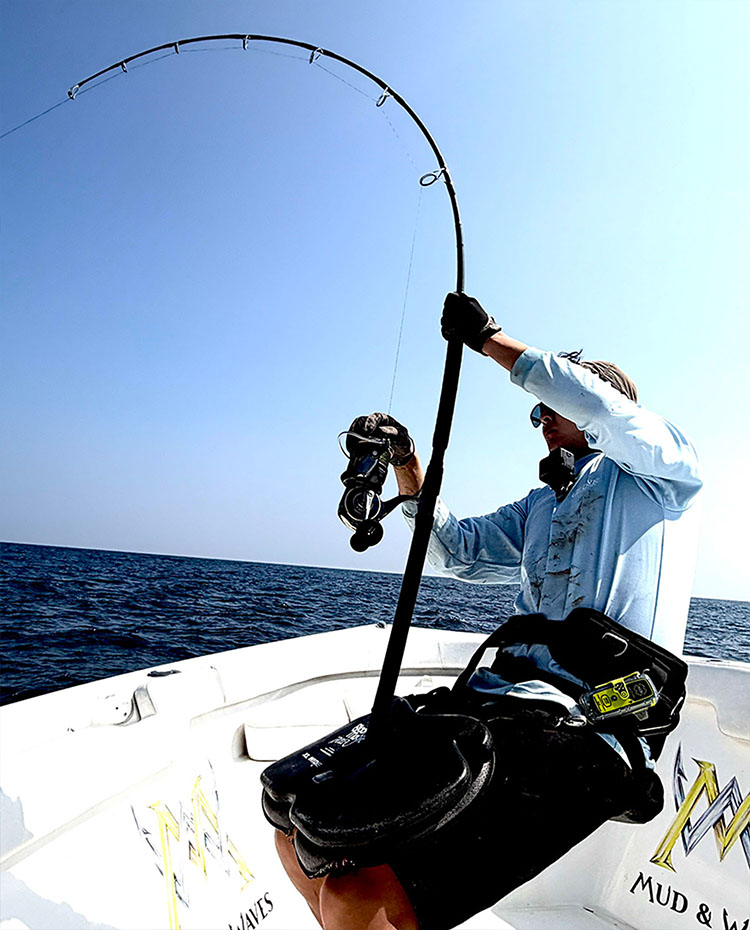 水面を見るときの視野や偏光性能がすごくいいとずっと聞いていましたが、僕の場合は海中の見えやすさが決め手でした。最初にヒラマサ釣りでイーズグリーンをかけたときに驚きました。魚がルアーをひったくるまではほかの偏光グラスでも見えますが、その後にヒラマサがどの方向に泳いでいくかまで、びっくりするぐらいにはっきり見えたんです。それから5、6年は使っていますが、今も一番に思うのは海の中の見えやすさ。情報量がとにかく多いです。あともうひとつは疲れにくさです。1日中遠くを見つづけていても、タレックスのレンズだと疲れを感じにくいです。オマーンの照りつけるような日差しの中、5日連続の釣行でもタレックスなら目の充血や疲れもありませんでしたよ!