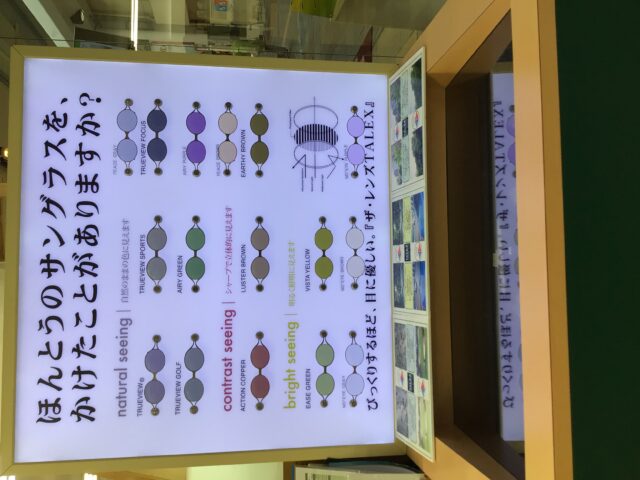 TALEXのほぼすべてのカラーを体験できます。店内床面の反射光カットの確認や、近隣の公園での木々の見え方の体験などできます。お気軽にお申し付け下さい。