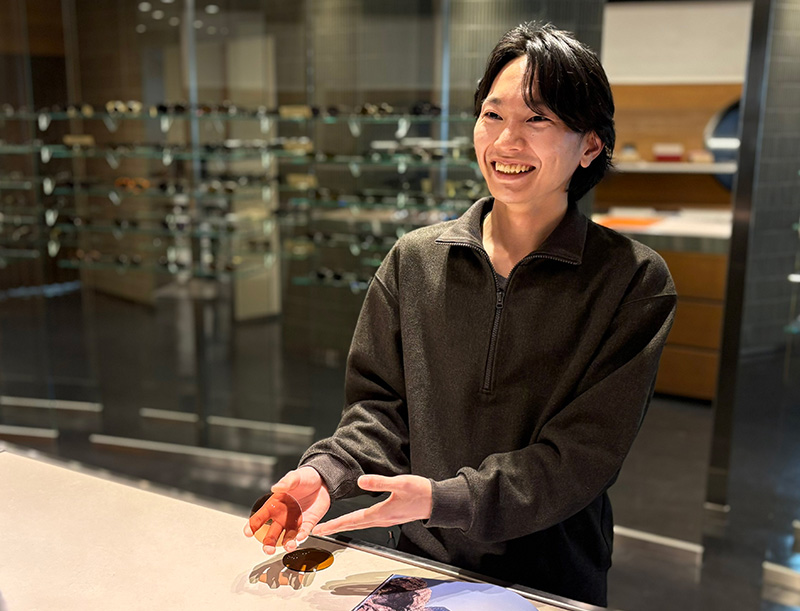 1つのプロジェクトを動かすのは簡単なことではありません。サングラスの製造工程や宣伝方法を考え、店頭に並ぶまでのプランを立てる。今まで販売を行ってきた私にとっては全てが初めての経験で、分からないことばかりでした。全てのノウハウを理解するには根気強さが必要です。全国の取扱店のスタッフ様から「最近女性のお客様が増えたよ」「あのサングラス凄く人気だよ」といったお声を聞ける瞬間が、私にとっては至福です!また、社内でも成果を褒めてもらえるので、次から次へと色んな挑戦をしたくなります!もちろん、ユーザーの方から直接届く感謝のお声が、一番のやりがいへと繋がっています。