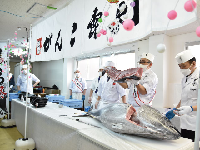 毎年、全社員が集まる「感謝祭」を開催しています。マグロの解体ショーや餅つき、ビンゴ大会など、その年ごとの工夫を凝らした企画を通じて大盛り上がり!部署や職種を越えて交流できる場として、日頃は関わる機会の少ないスタッフ同士のコミュニケーションを深める、TALEXの恒例行事となっています。